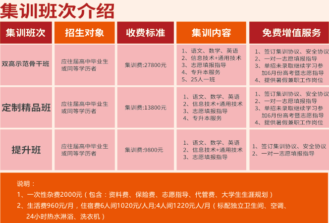 2026年单招集训班开设班型