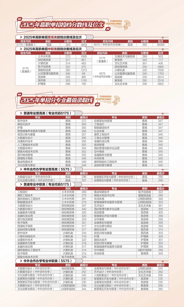 2025年高职单招各专业录取分数线