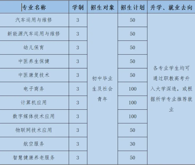共计特色专业十一种可选,毕业后可升学可就业。