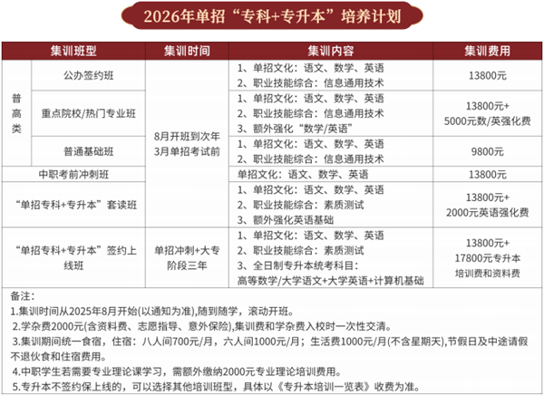 课程体系:课程覆盖单招考试的文化综合、职业技能测试及志愿填报指导,教材由学校自主编撰,针对性和实用性较强。此外,提供线上网课和线下集训结合的灵活学习模式,满足不同学生需求。