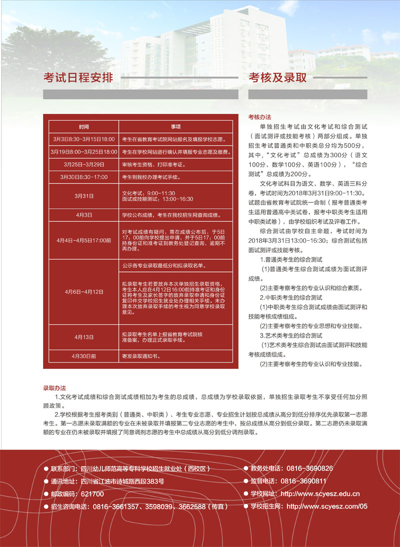 四川幼儿师范高等专科是西南地区最大的幼儿师范类学校,学校环境优美,办学特色鲜明,欢迎广大学子前来报名参观,详情咨询招生办熊老师:177783466招生